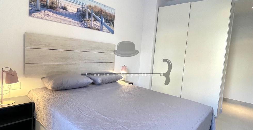 It has 2 double bedrooms, 2 bathrooms (1 en suite), living room and kitchen. In addition, it is fully equipped, as it has all kinds of appliances (coffee maker, fridge, oven, microwave, toaster, blender, dishwasher, dryer, washing machine, juicer, ironing board and iron, etc. ), as well as utensils (plates, cutlery, glasses, pans and pots, rags, etc. ).
